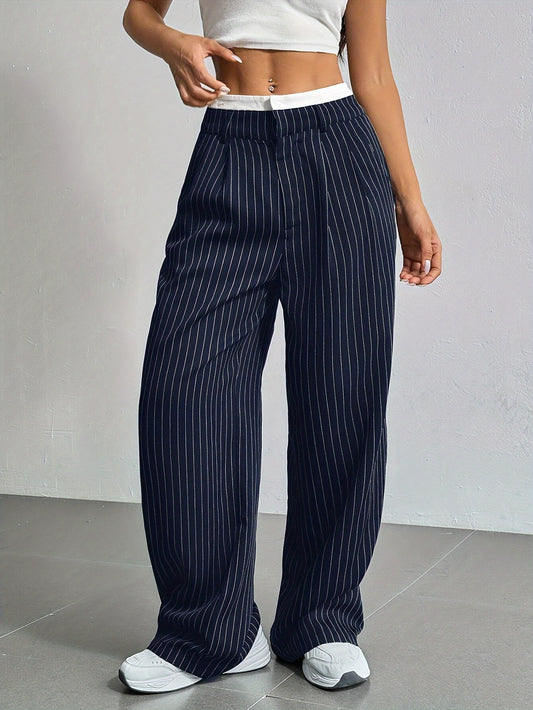 Eliška - Pruhované široké nohavice s vysokým pásom a sako