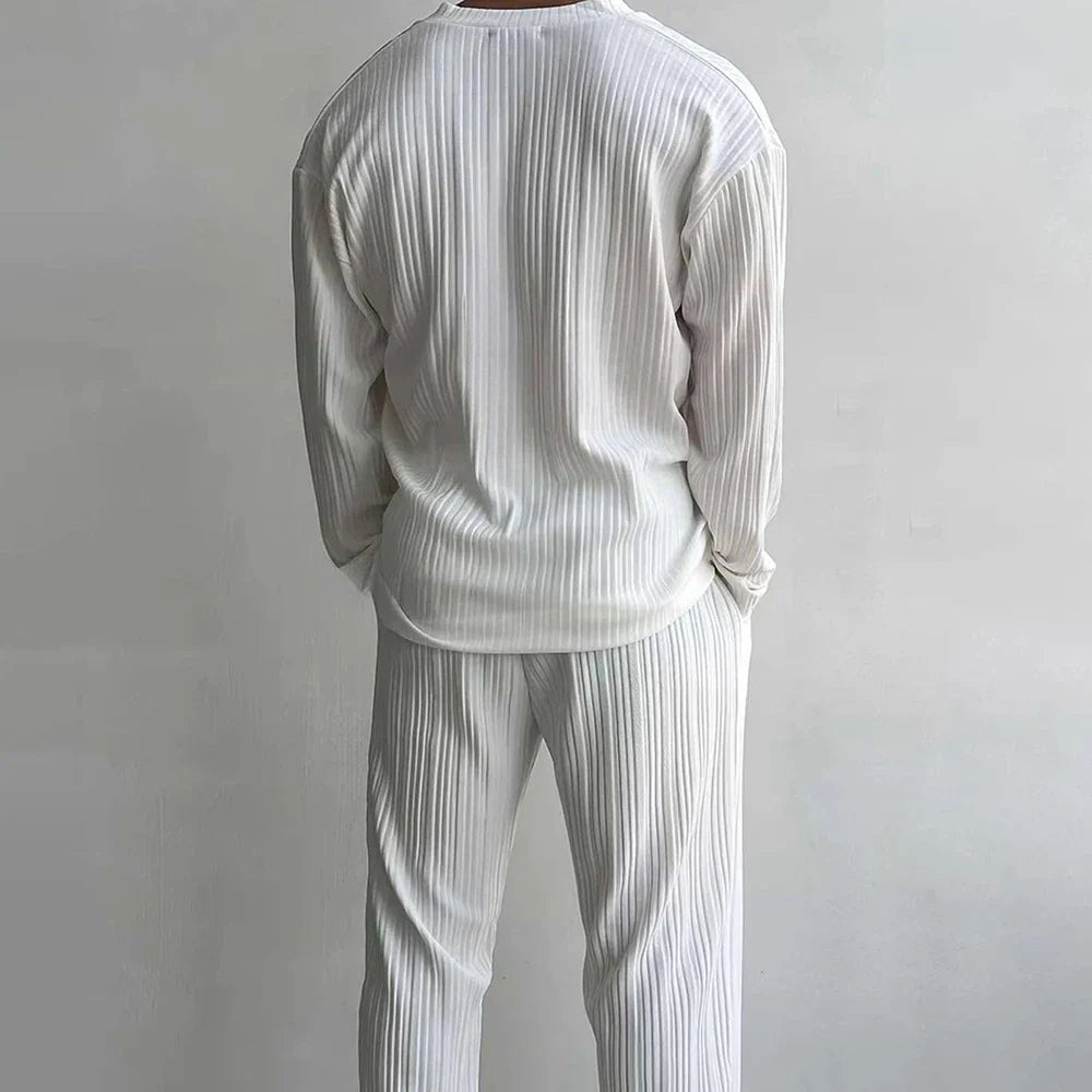 Vklznite do niečoho, čo zanechá dojem bez námahy. Sada Ruben™ kombinuje jemnú textúru so subtílnou charizmou a poskytuje vám pohodlie, ktoré sa vyníma. Či už sa uvoľňujete doma, stretávate s priateľmi alebo sa cieľavedome prechádzate svojím dňom—tento dvojdielny outfit vám zabezpečí, že budete vyzerať upravene, sebavedomo a pohodlne po celý deň.